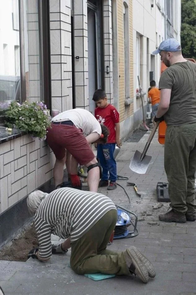 Heel concreet kunnen mensen ons onder meer inschakelen voor advies en begeleiding bij het uitbreken, het afvoeren of hergebruiken van de tegels en het puin, of het aanplanten van groen. De Koerkrakers gaan dus nooit zomaar op hun eentje aan de slag, maar altijd samen met de buurtbewoners. Bovendien scheelt deze aanpak ook heel wat in kostprijs, zowel voor ons als voor de tegelwippers in kwestie.